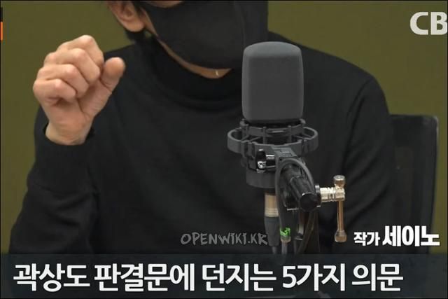 2023년 4월13일 김현정의 뉴스쇼에 출연하여 대장동 관련 50억클럽 곽상도 국민의힘 의원의 아들 퇴직금으로 가장된 50억 뇌물의 무죄판결에 대해 방대한 판결문 분석과 함께 본인의 비판적 의견을 표현했다. 이 때도 얼굴은 공개하지 않았다.