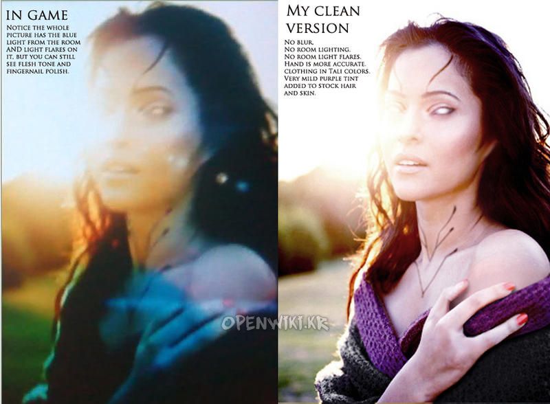 Unicron9이라는 서양유저가 게임 내 보여지는 탈리 사진을 보정한 사진. 보정을 했더라도 을 강제로 포샵질한거라 굉장히 징그럽다(…). –특히 손–