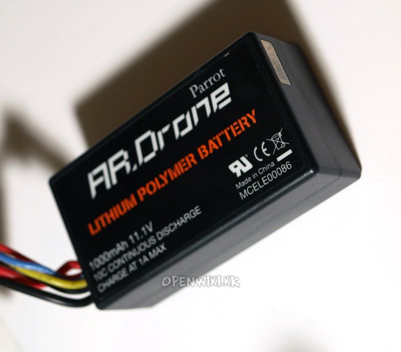 배터리는 찍찍이(벨크로)로 고정합니다. 조금 아쉬운 마감이지만 무게는 확실히 줄일 수 있겠군요. 바닥에는 연결을 해제할 수 있는 리셋 버튼 등이 위치해있습니다. 구동전압은 11.1V, 배터리용량은 1000mAh입니다. 그리고 리튬폴리머 전지군요